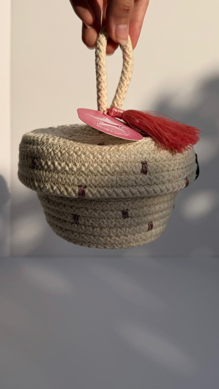 A handcrafted woven basket made from natural materials, inspired by traditional craftsmanship.